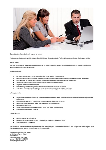 Herzlich Willkommen bei der Handelsvertretung Ronny Münch