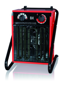 Das Gehäuse besteht aus galvanisiertem, rot lackiertem Blech; die Heizelemente sind aus Edelstahl EN 1.4301. BX 9AE und BX 9ANE besitzen an der Frontseite einen Umschalter für niedrige und hohe Gebläsedrehzahl. Schutzklasse IPX4 (geschützt gegen Spritzwasser) und zugelassen für die Verwendung in feuchten und nassen Räumen (zum Beispiel auf Baustellen).